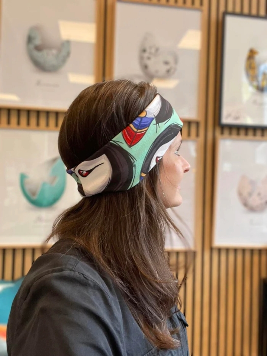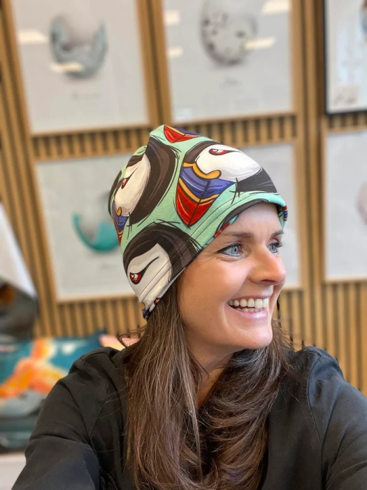 Multifunktionstuch mit liebevollem Papageitaucher-Motiv, das nordisches Design mit praktischer Alltagstauglichkeit verbindet.