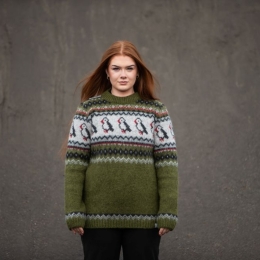 Herren / Damen Wollpullover - Puffin - grün kombi