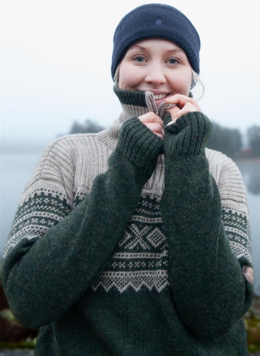 Norweger Pullover Marius mit Hochkragen - forstgrün/beige