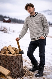 Norweger Wollpullover - Farbkombination weiß / schwarz
