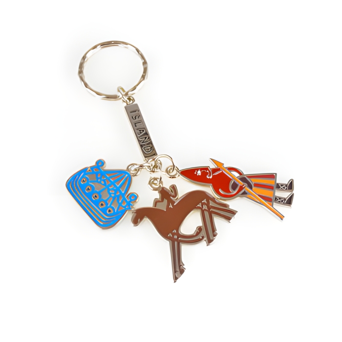 Metall-Schlüsselanhänger mit 3 Anhängern.
