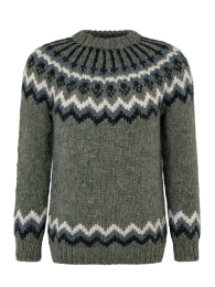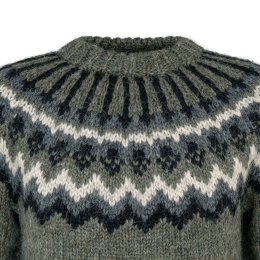 Herren Islandpullover HSI-216 - Handgestrickt - Grau-Grün